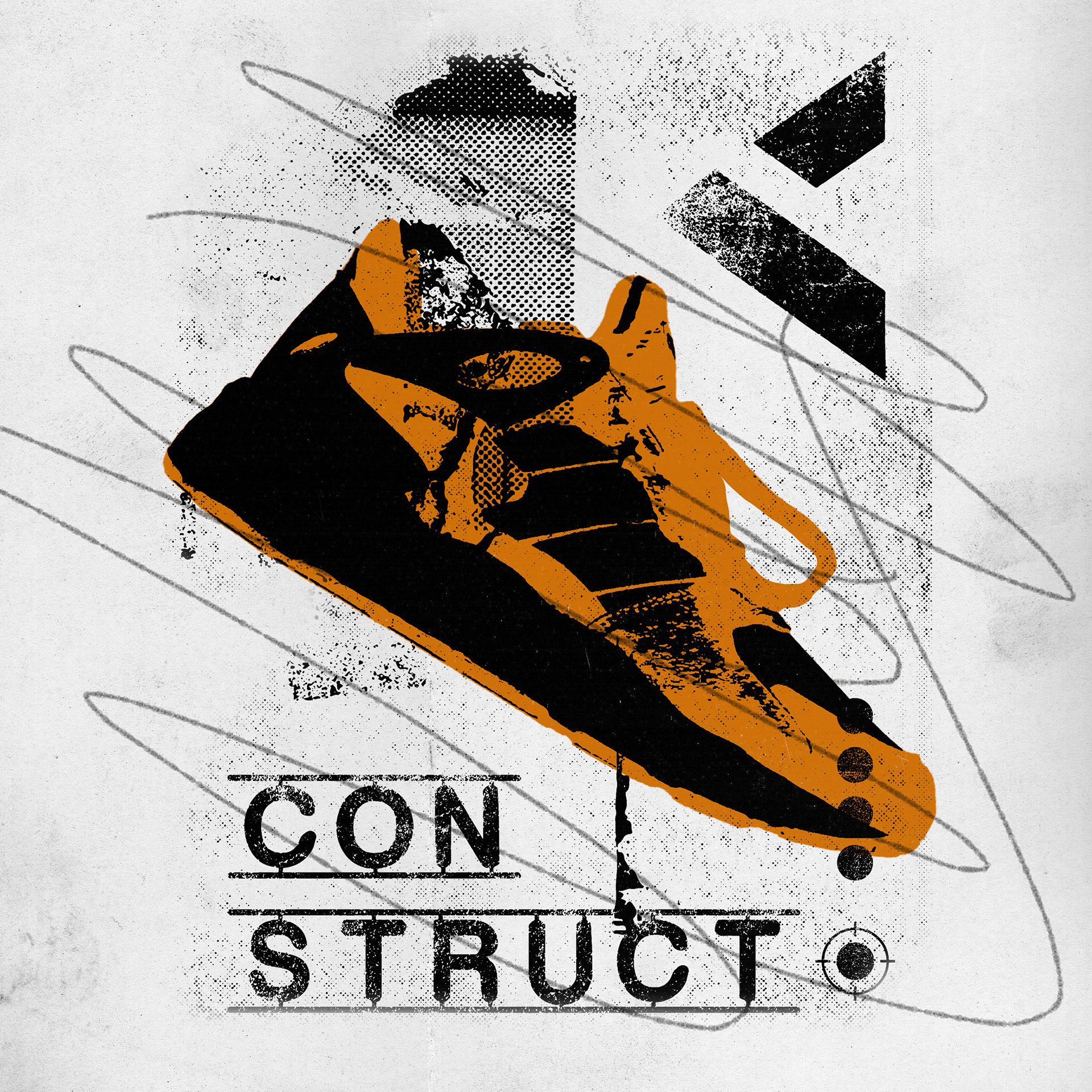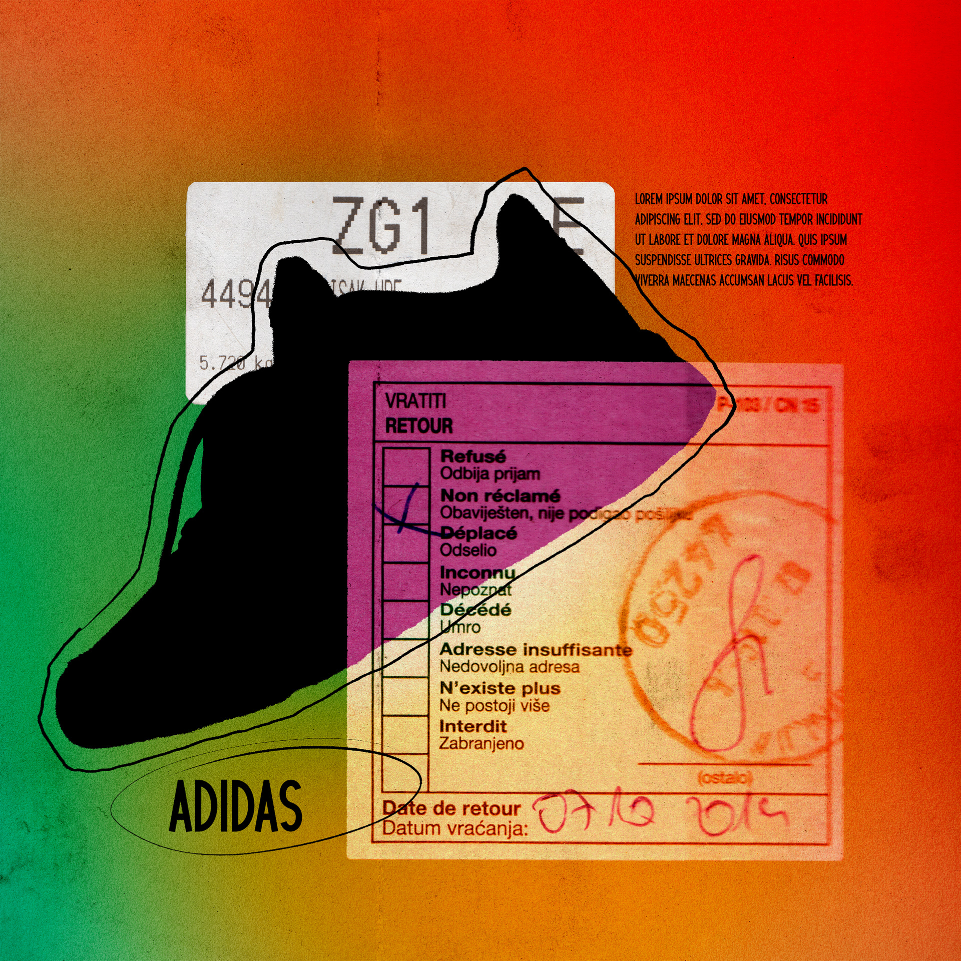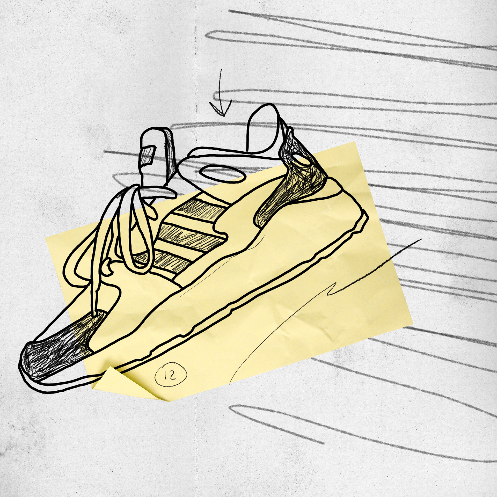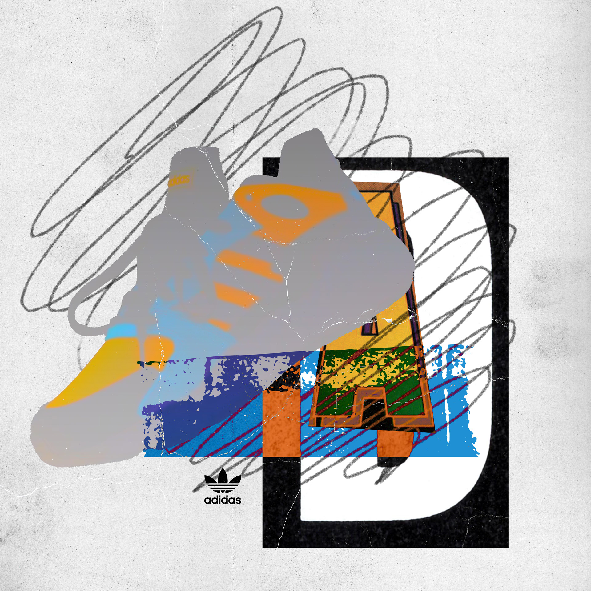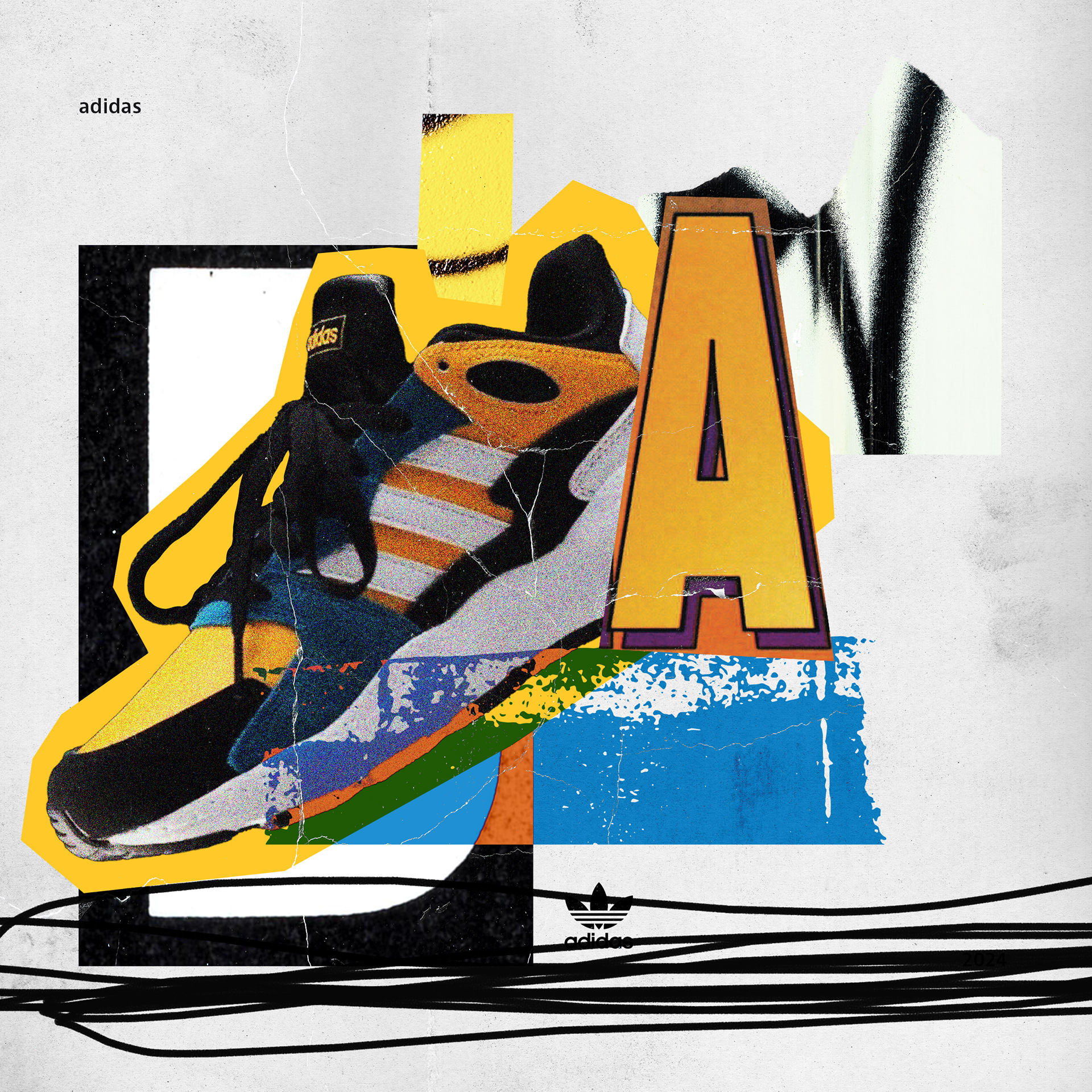 brand and one of its sneaker models, combining collage, graphics, and sketches.