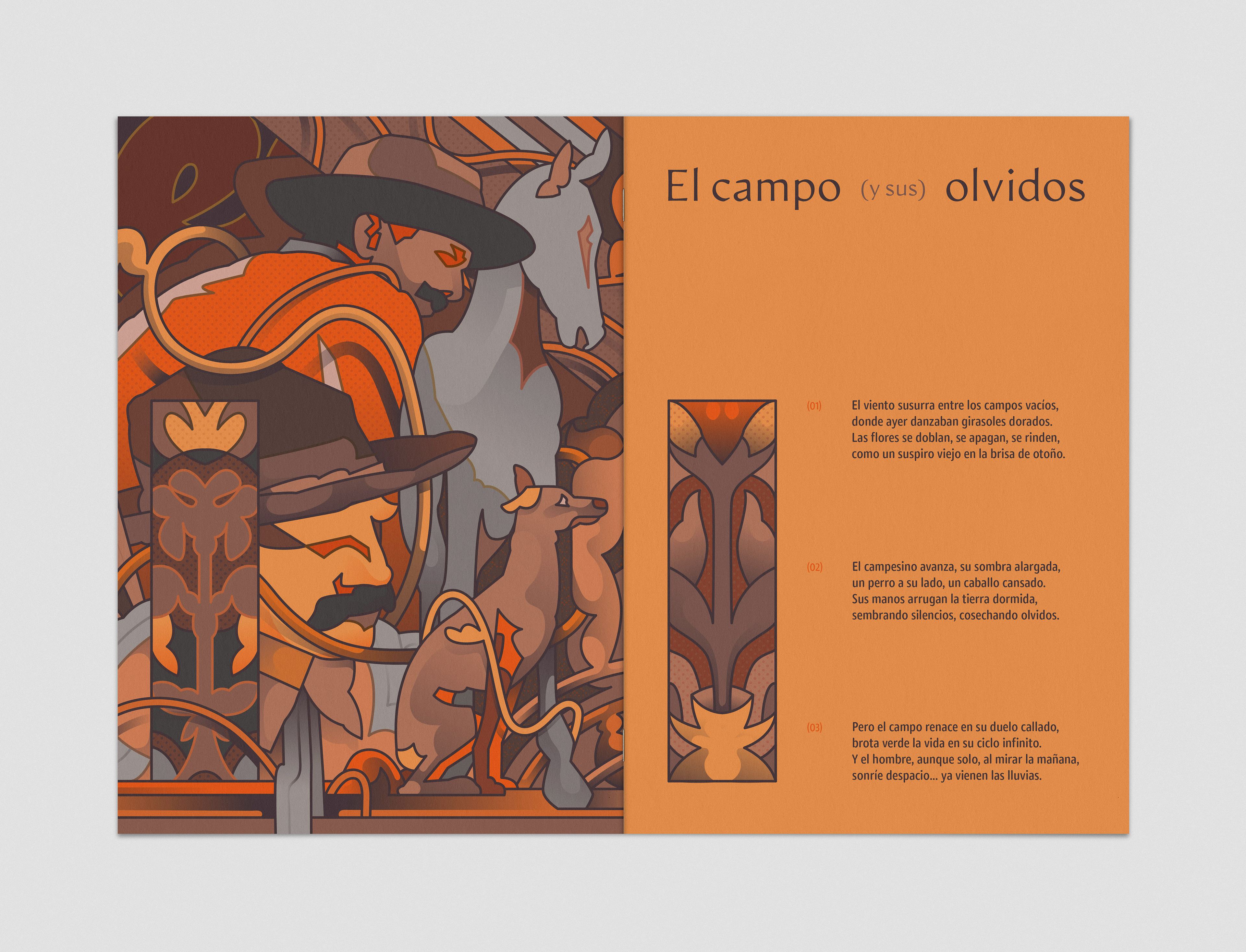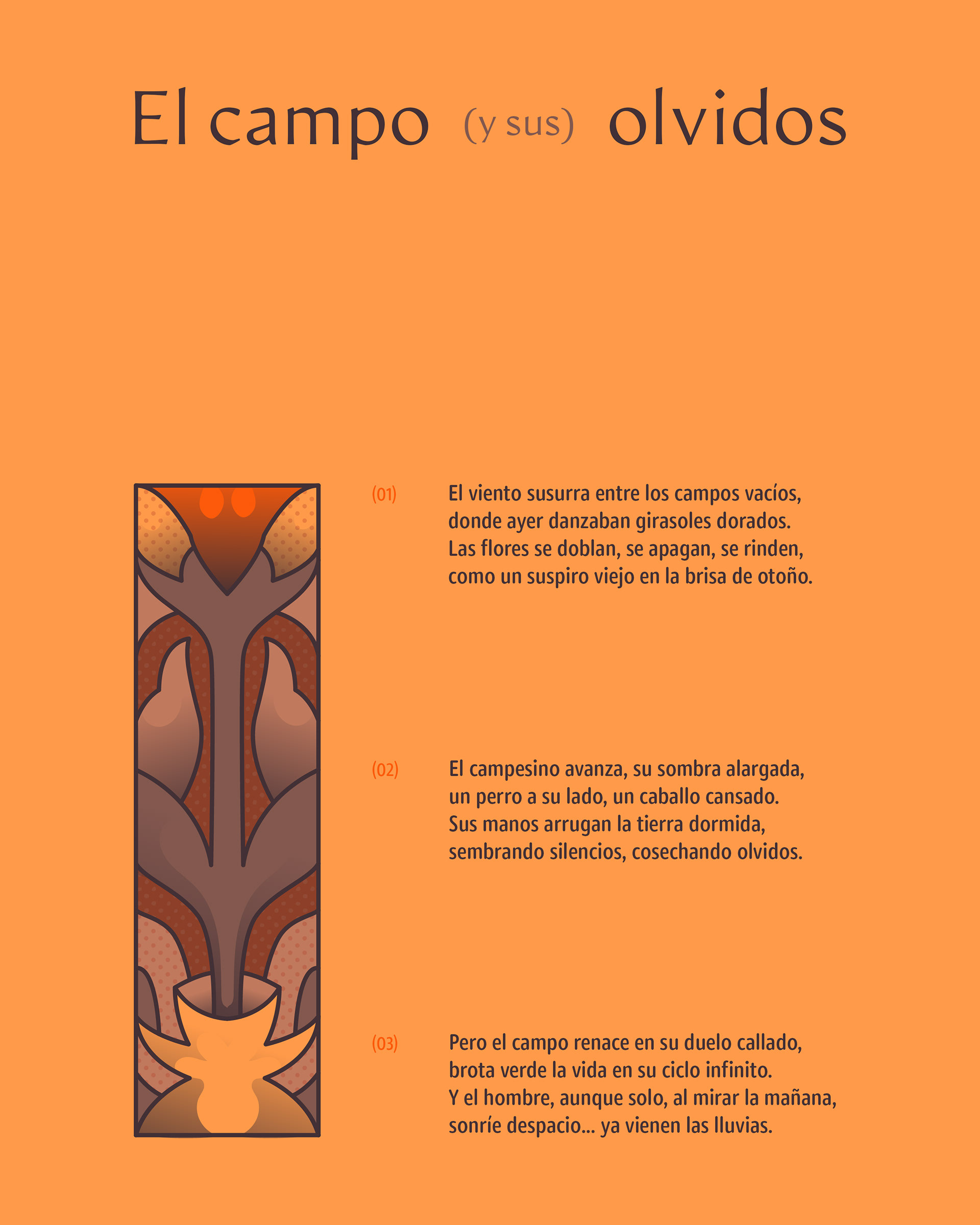 Los colores arden como un sol antiguo, las formas se entrelazan en un ciclo infinito. ¿Es un instante o una memoria? ¿Un regreso o una despedida? El campo calla, pero nunca olvida.