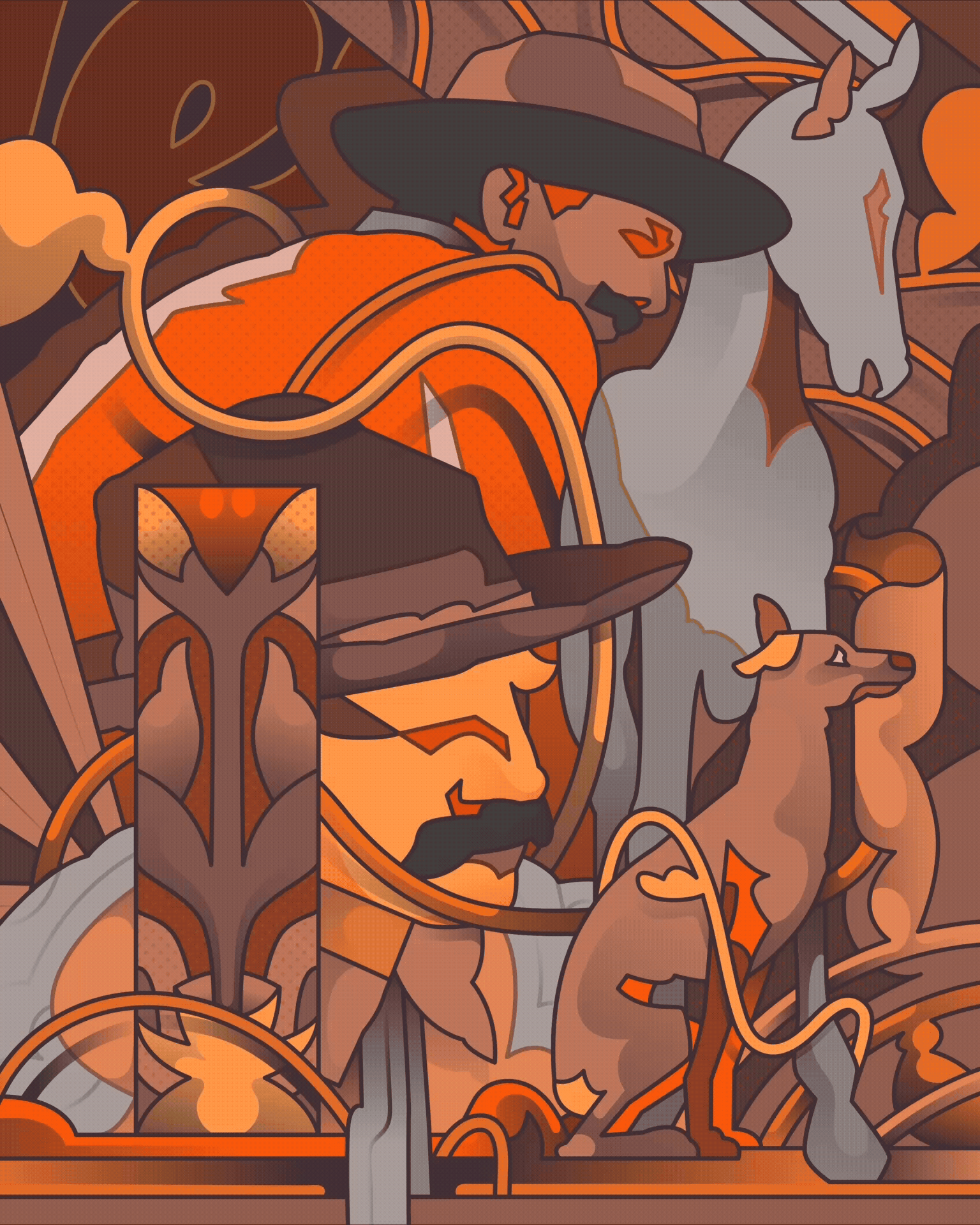 El tiempo se pliega en líneas y sombras, un vaivén de recuerdos que el viento arrastra. Un rostro emerge y se disuelve, como la tierra que duerme y despierta. El caballo, el perro, el hombre: figuras que no están del todo aquí ni del todo allá, atrapadas en el susurro de la cosecha y la espera de la lluvia.