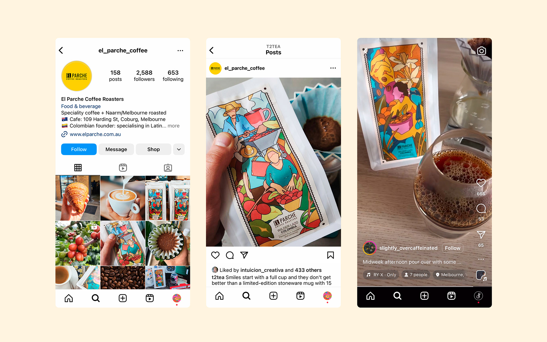 Illustration for El Parche Coffee Roasters in Melbourne, Australia, inspired by the processes carried out by coffee producers on their farms.